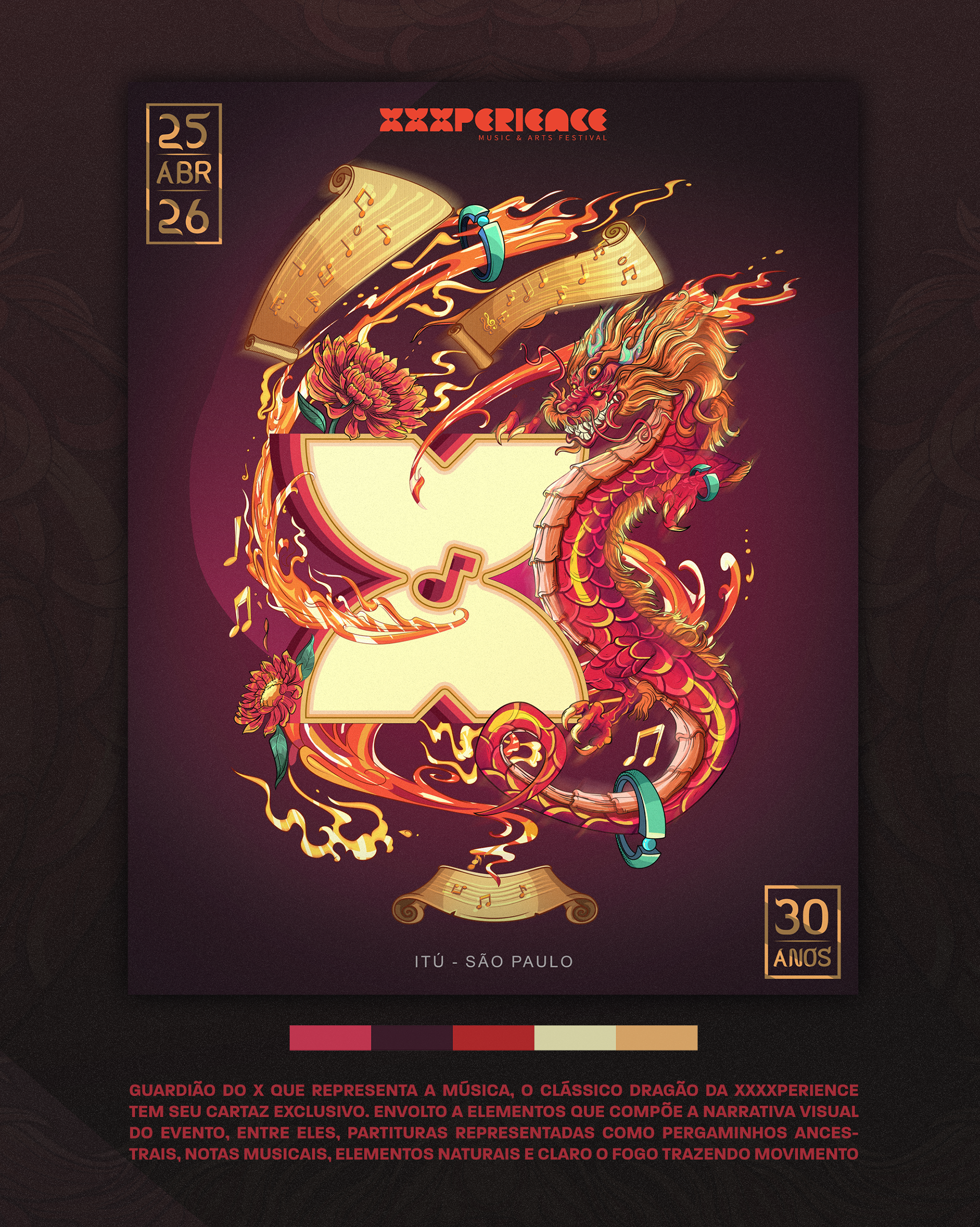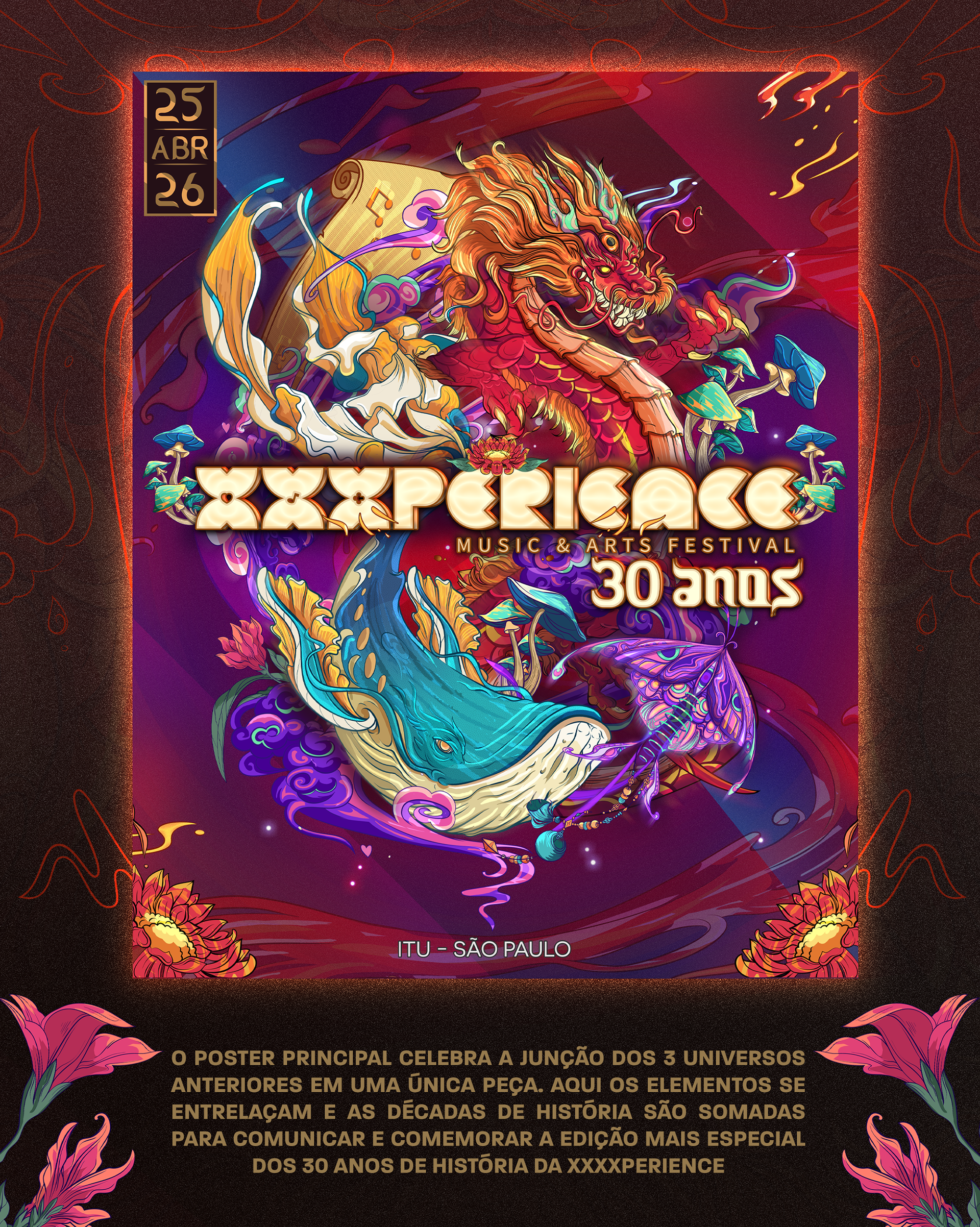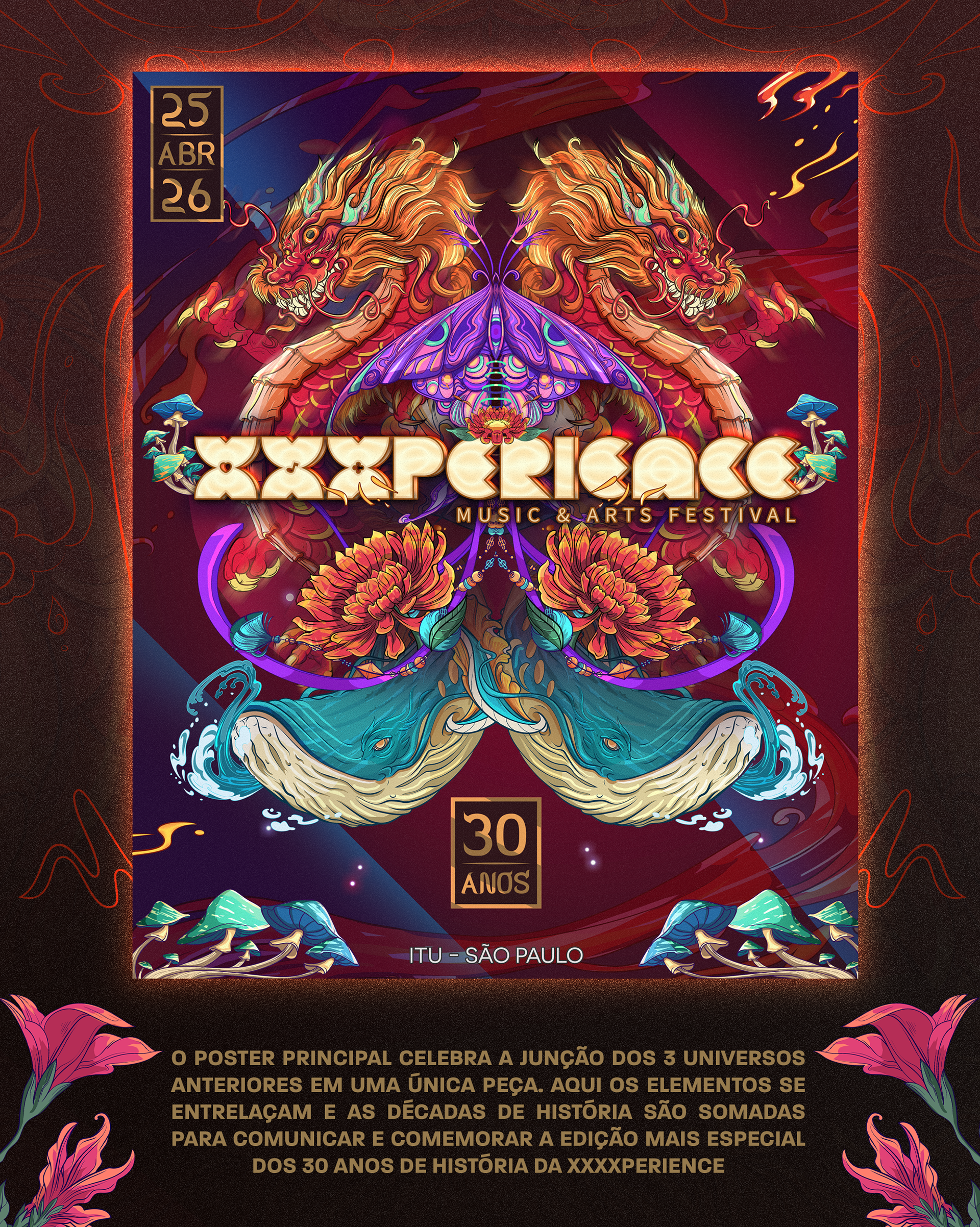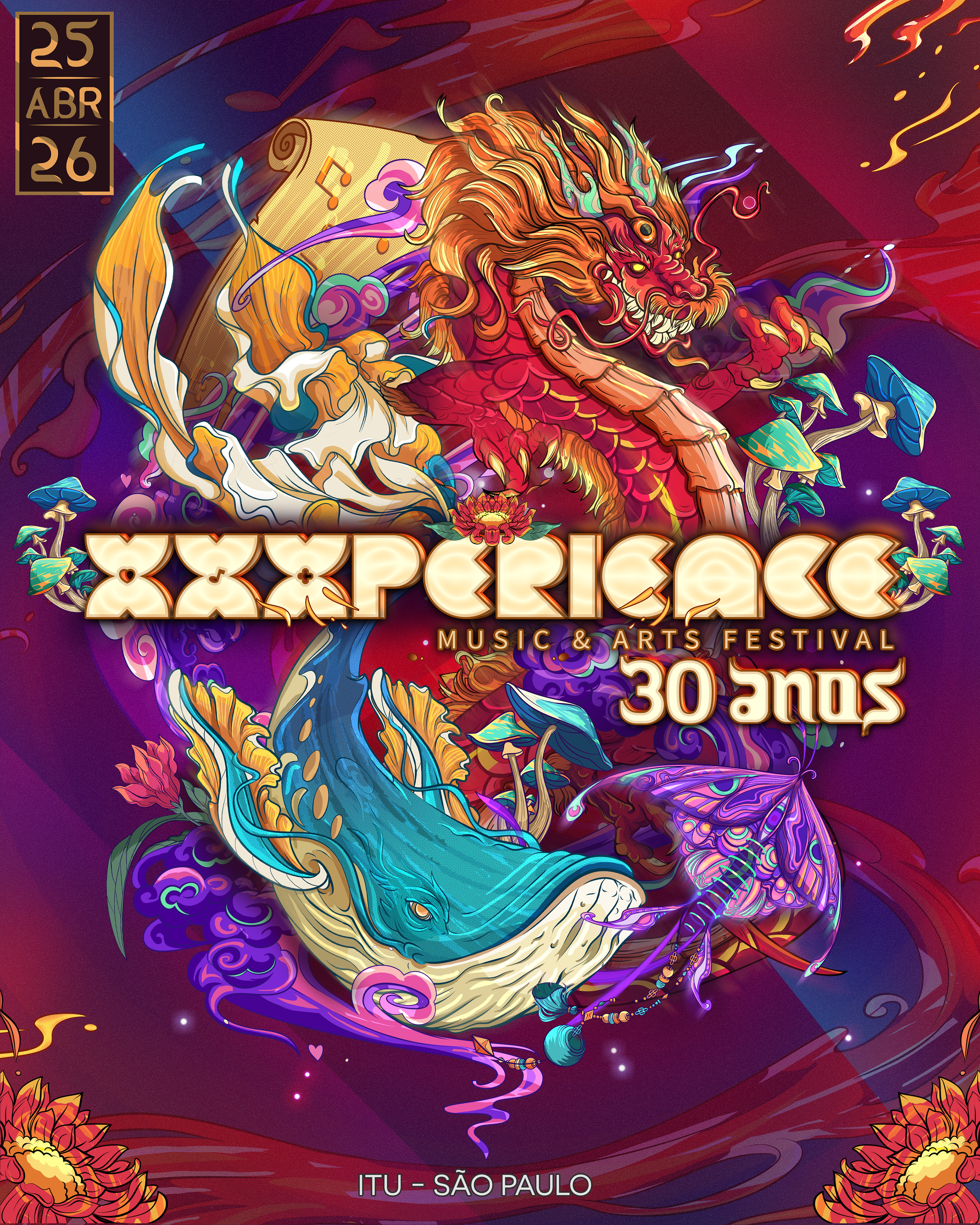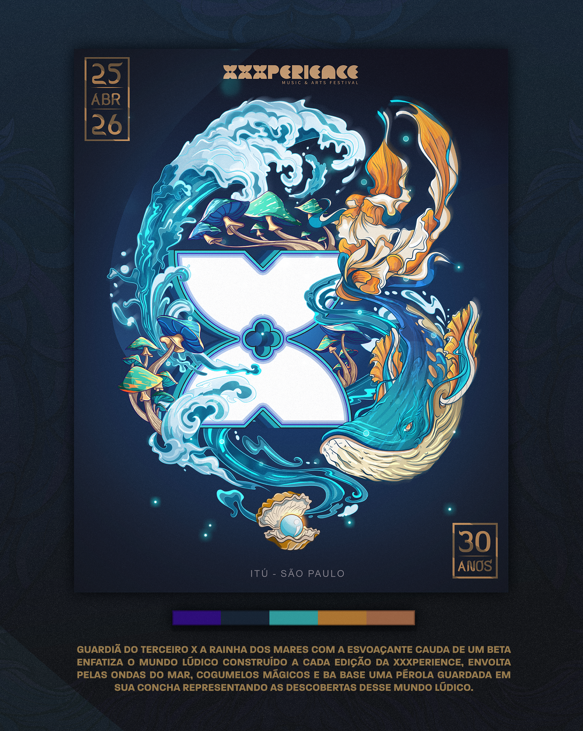 Key visual made to XXXperience 30 years event in Brasil. The main ideia was to depict one artwork to each decade of the event. So each X means a decade with your own personality, colors and elements. And to reunite the whole XXXperience world, we made the main illustration merging the elements of all decades in one single artwork.